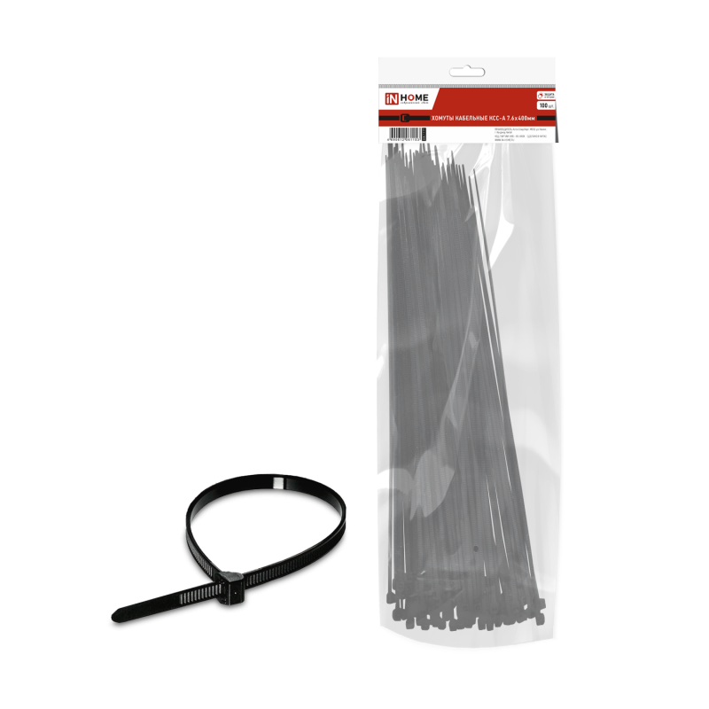Хомут КСС-А 7.6х400 нейлоновый с УФ защитой черн. (уп.100шт) IN HOME 4690612061153