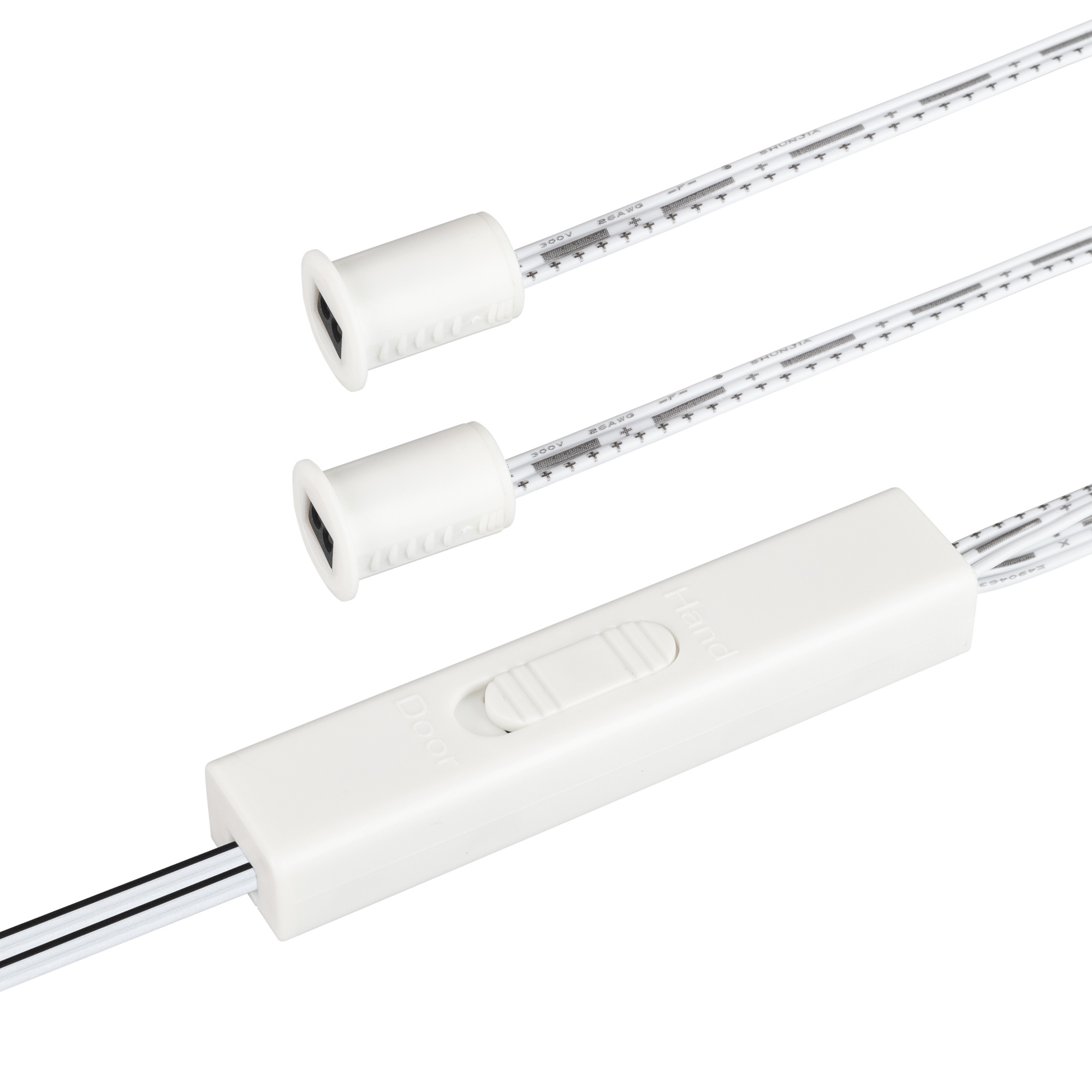 Выключатель для светодиодной ленты 12-24 В. В комплекте 2 датчика. Питание/рабочее напряжение DC 12-24 В, максимальный ток 4 A на канал, 1 канал, максимальная мощность 48-96 Вт. Реагирует на открывание дверей или движение рукой, переключатель между режимами «hand» - «door» расположен на корпусе блока управления. Расстояние срабатывания до 10 см, датчик открыт — «вкл», закрыт — «выкл». Габаритные размеры блока управления: 75 х 15 х 11 мм, кабель 1 м (у датчика), кабель 25 см (питание). Габаритные размеры датчика: 13 х 18 мм, врезное отверстие Ø 11 мм.