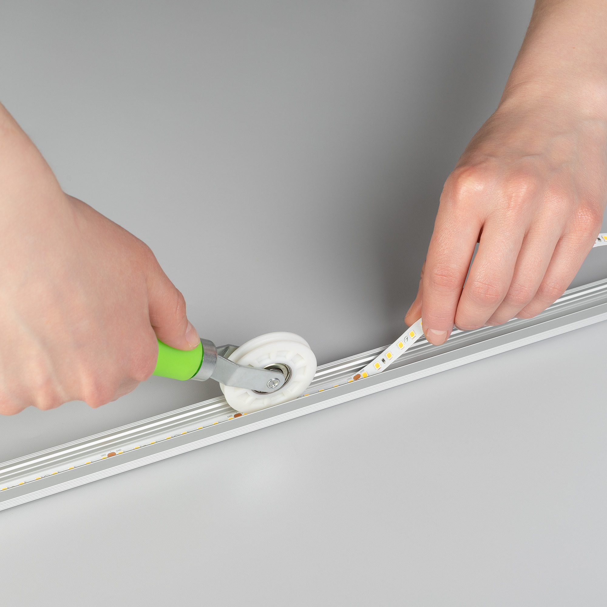 Инструмент для установки ленты SMD/COB в профиль. Подходит для установки ленты шириной 6/8мм. Размеры 240х46х23 мм. Материал роликов: пластик. Максимальная глубина профиля 15мм.