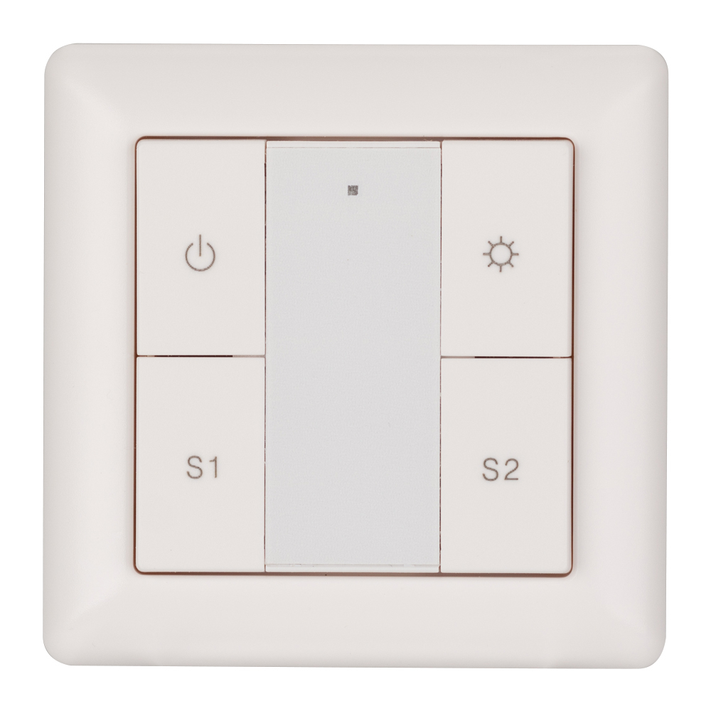 Встраиваемая кнопочная белая пластиковая панель для работы по протоколу DALI. Включение/выключение, диммирование, вызов и сохранение 2-х сцен в 1 группе. Установка номера группы и номера первой сцены выполняется переключателями на корпусе. Питание от шины DALI (4 мА). Стандартная рамка входит в комплект поставки.