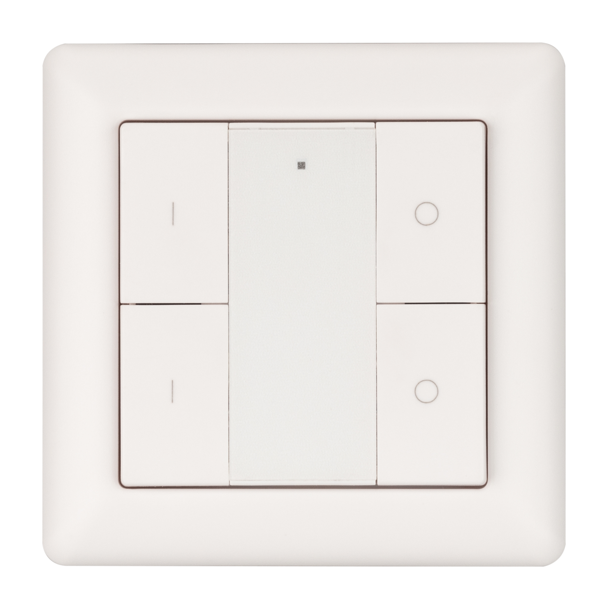 Встраиваемая кнопочная белая пластиковая панель для работы по протоколу DALI. Управление 2-мя группами. Установка номера первой группы выполняется переключателями на корпусе, функции каждой группы (ВКЛ / ВЫКЛ / ДИММИРОВАНИЕ). Питание от шины DALI (4 мА). Стандартная рамка входит в комплект поставки.