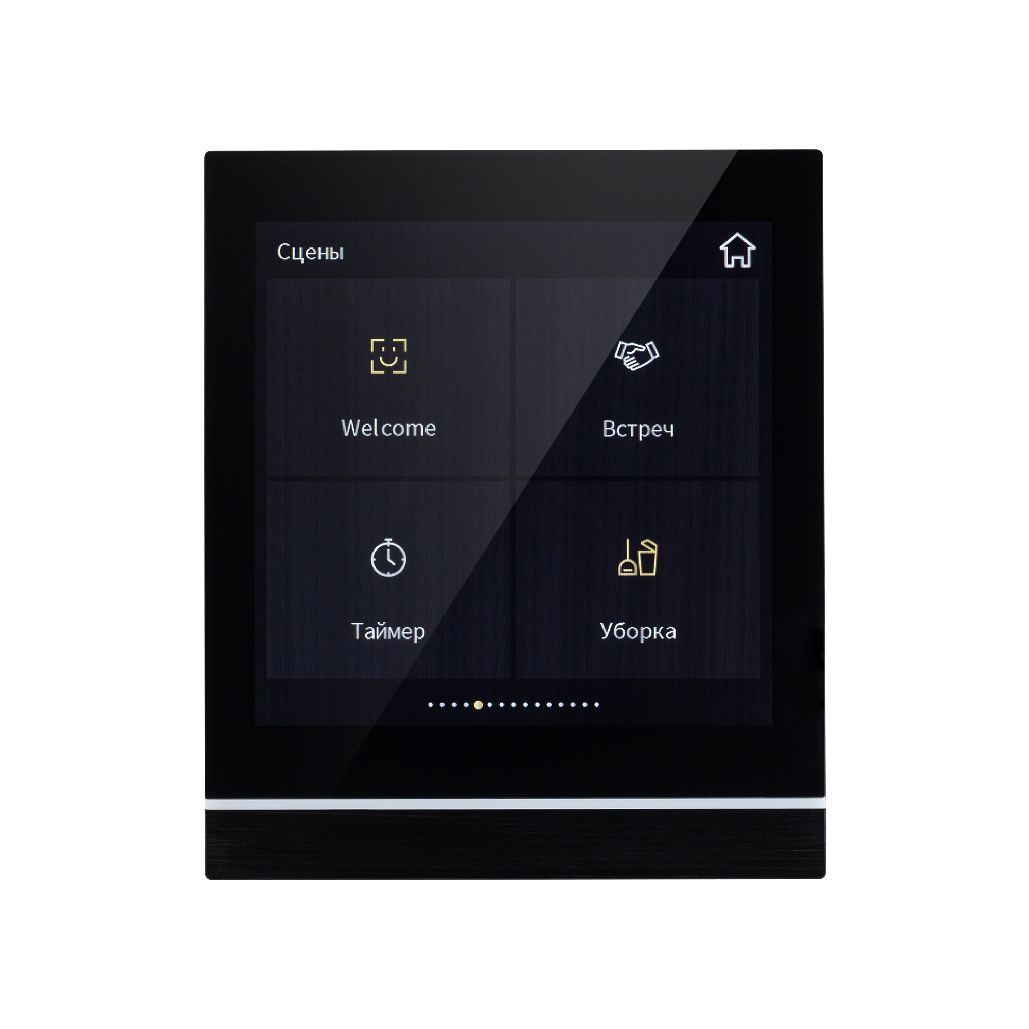 Многофункциональная встраиваемая настенная панель стандарта KNX с цветным сенсорным дисплеем 4.0”. До 16 слайдов, на каждом до 8 элементов управления. Виджеты для RGBW, MIX (CCT), климатики, мультимедиа. Встроенный датчик температуры. Логические функции. Разрешение экрана 480*480. Требуется дополнительное питание AUX DC 24-30V. Размер 86x101x32 мм.