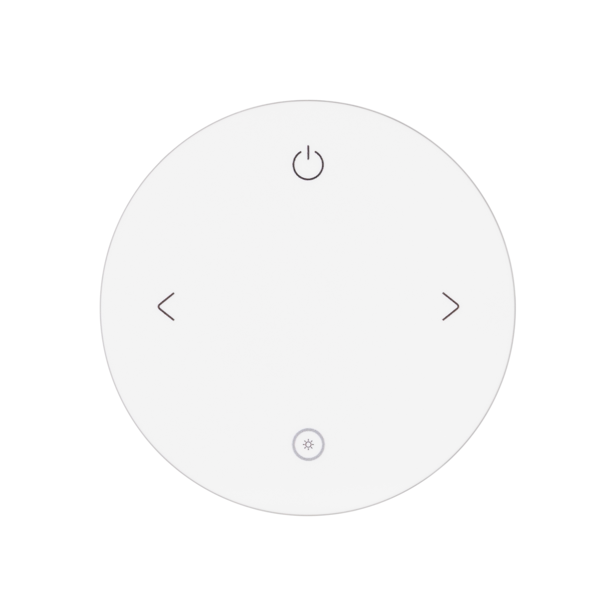 Кнопочный радиопульт 2.4 ГГц белого цвета для управления одноцветными (DIM) источниками света. 1 зона управления. Питание 3VDC (CR2032). Габариты 75x75x18 мм. Изготовлен из пластика с покрытием, защищающим от загрязнения. Магнитная основа. Управляет контроллерами и панелями серии SMART (поставляются отдельно).
