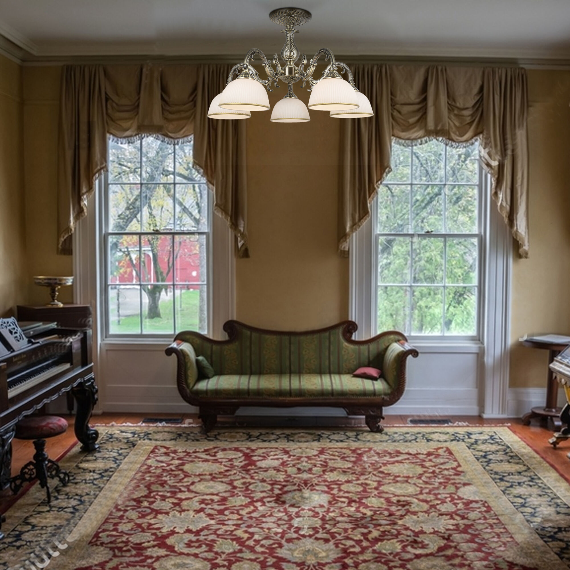 Классическая потолочная люстра 60106/5 античная бронза из коллекции Caldera предназначена для создания основного освещения в современных и классических интерьерах. Плавные линии, филигранные узоры на металлическом каркасе цвета античной бронзы и нежные, рассеивающие свет плафоны создают гармоничный и привлекательный образ. Люстра осветит помещение площадью 13 м².