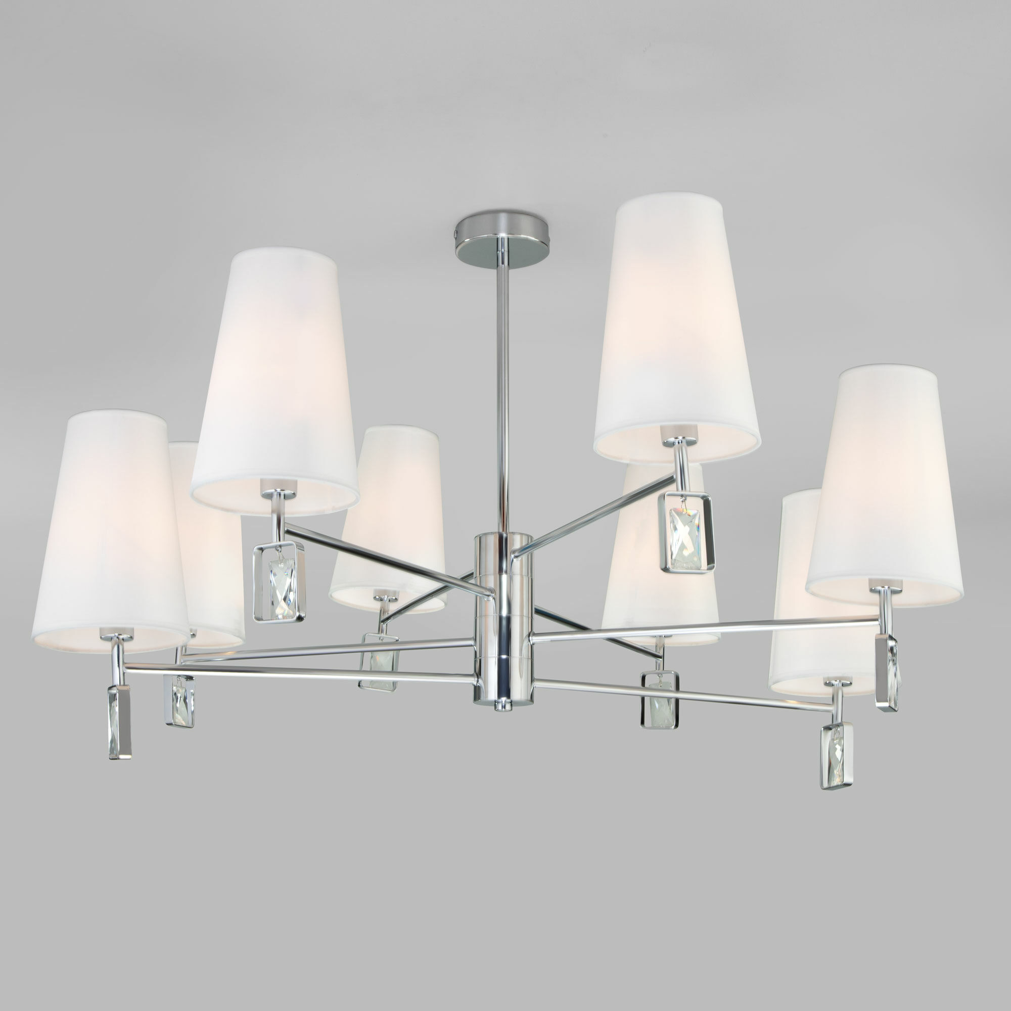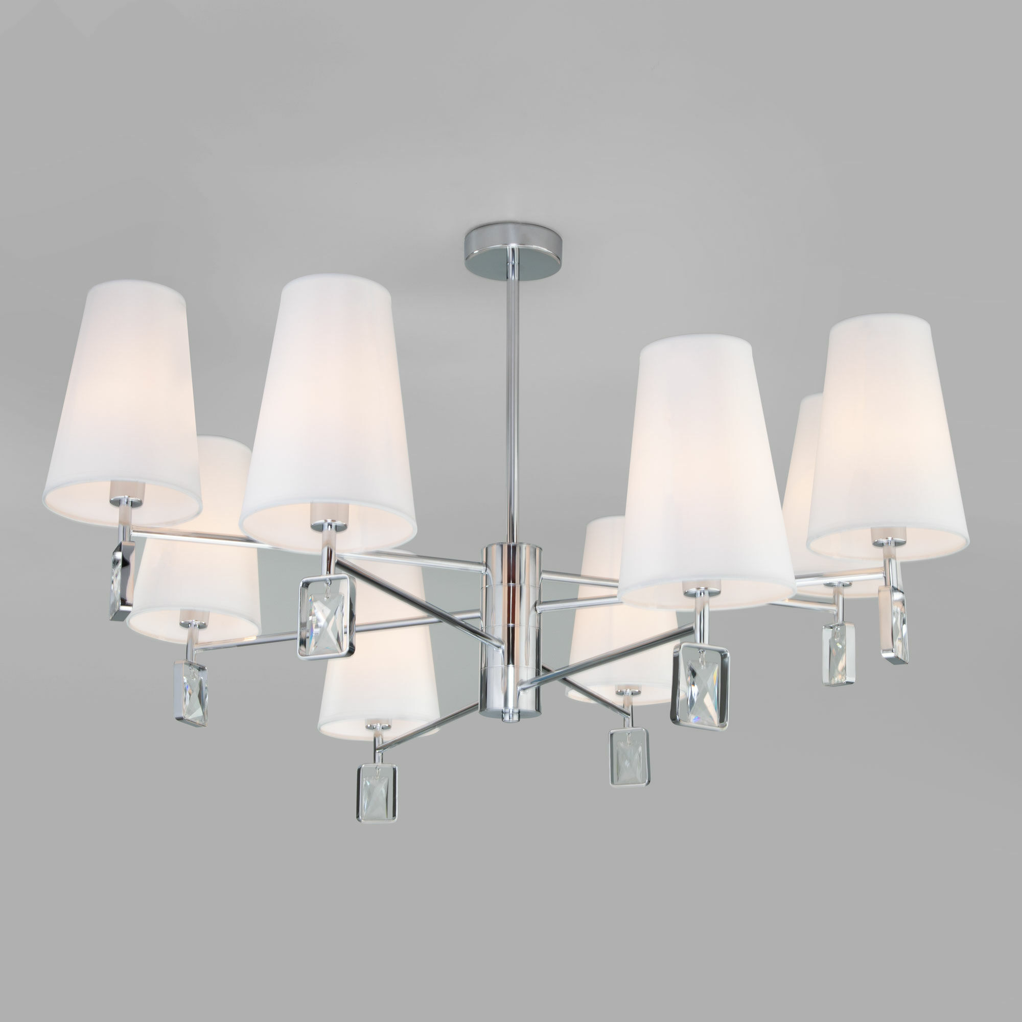 В люстре рекомендуется использовать сменные лампы накаливания с цоколем Е14 с максимальной мощностью 40 Вт. В производстве люстры использовали высококачественный метал с надежным защитным покрытием и хрусталь с изящной огранкой.