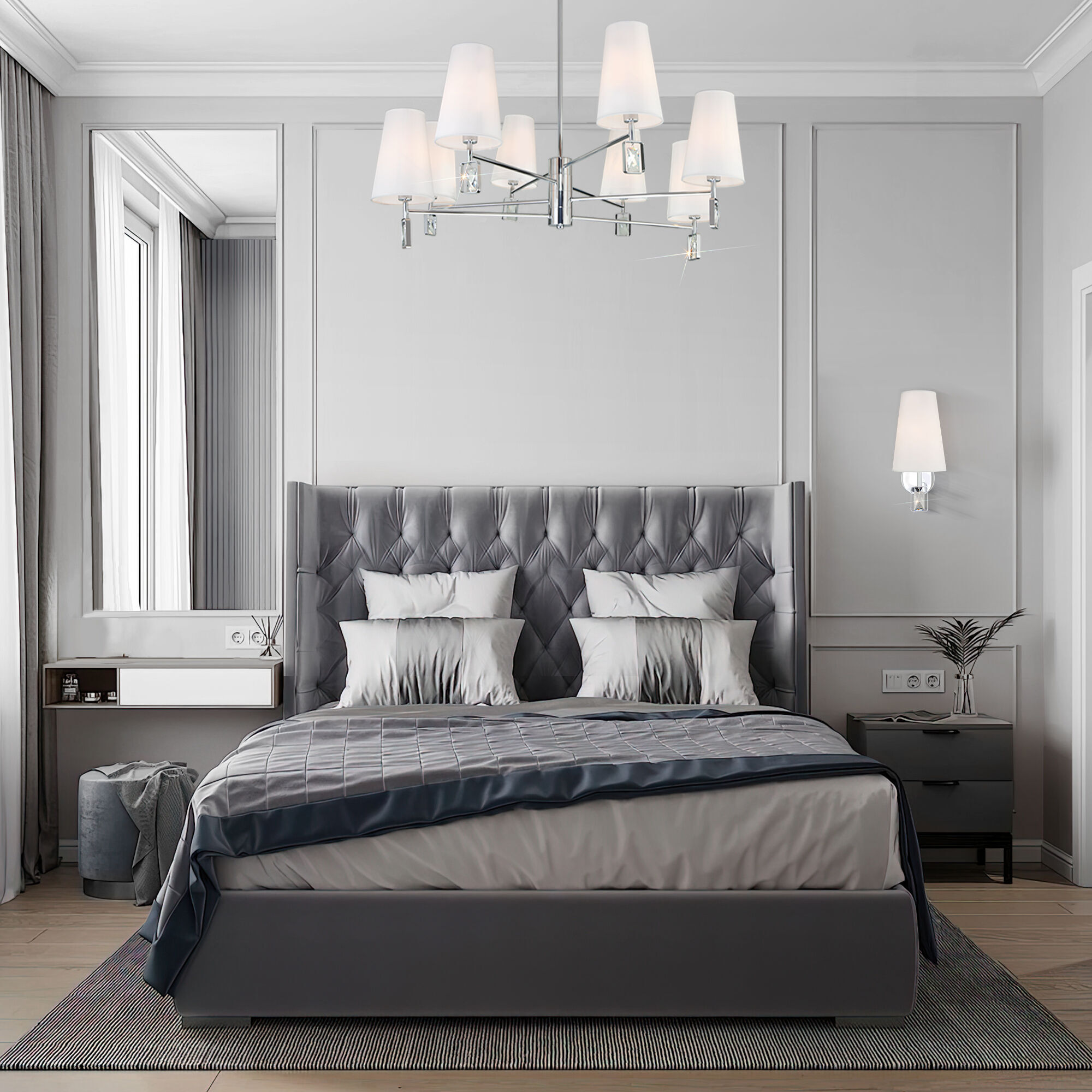 Создать качественное освещение вам поможет классическая потолочная люстра с тканевыми абажурами. Простые минималистичные формы и сдержанные тона станут идеальным дополнением для вашего интерьера. Люстра украсит потолок вашей спальни и создаст полноценное освещение на площадь 14 м².