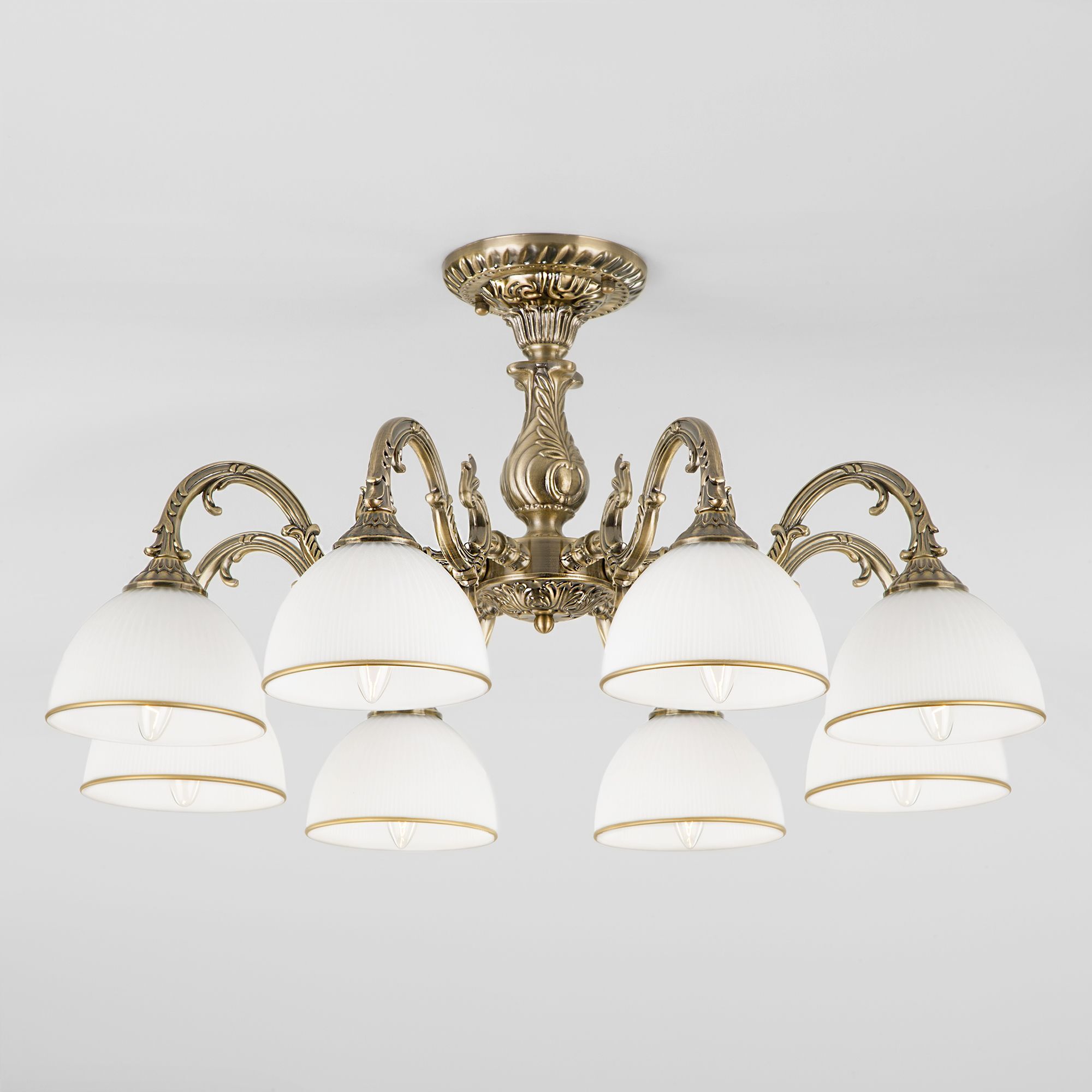 Классическая потолочная люстра 60106/8 античная бронза из коллекции Caldera предназначена для создания основного освещения в современных и классических интерьерах. Плавные линии, филигранные узоры на металлическом каркасе цвета античной бронзы и нежные, рассеивающие свет плафоны создают гармоничный и привлекательный образ. Люстра осветит помещение площадью 21 м².