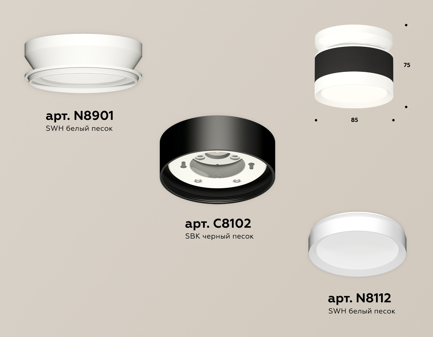 Комплект накладного светильника XS8102045 SBK/SWH черный песок/белый песок GX53 (N8901, C8102, N8112)