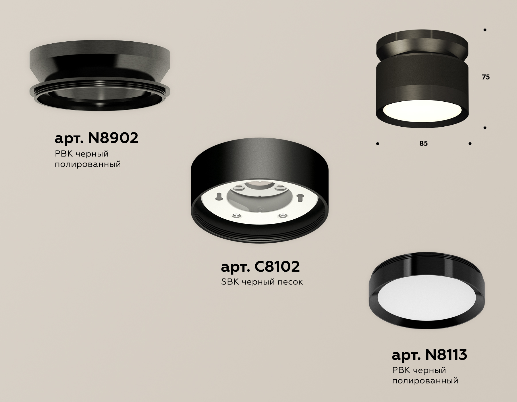 Комплект накладного светильника XS8102050 SBK/PBK черный песок/черный полированный GX53 (N8902, C8102, N8113)