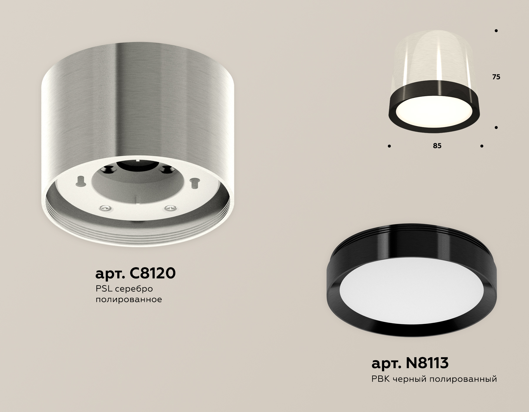 Комплект накладного светильника XS8120001 PSL/PBK серебро полированное/черный полированный GX53 (C8120, N8113)