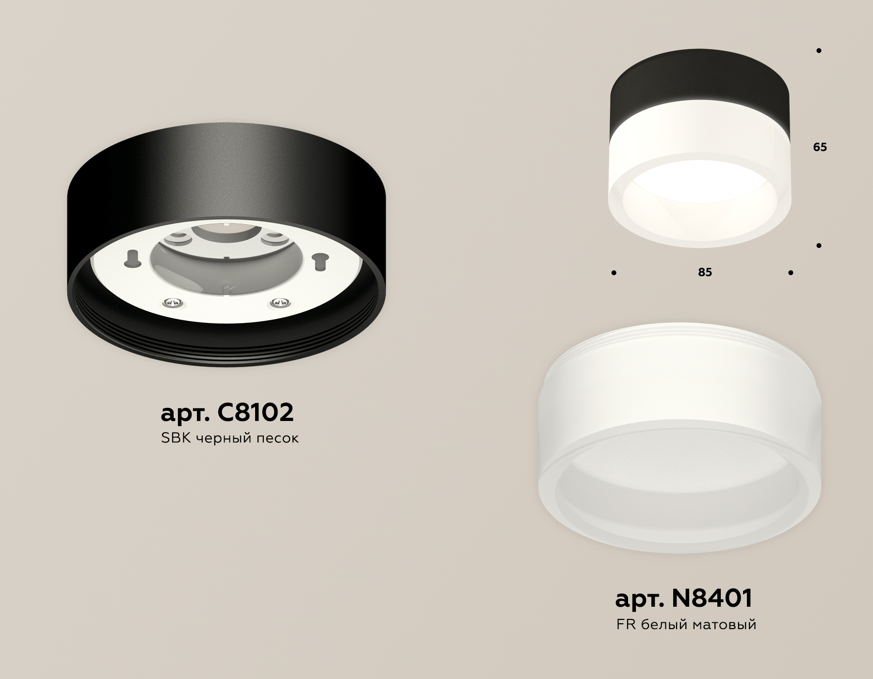 Комплект накладного светильника с акрилом XS8102015 SBK/FR черный песок/белый матовый GX53 (C8102, N8401)