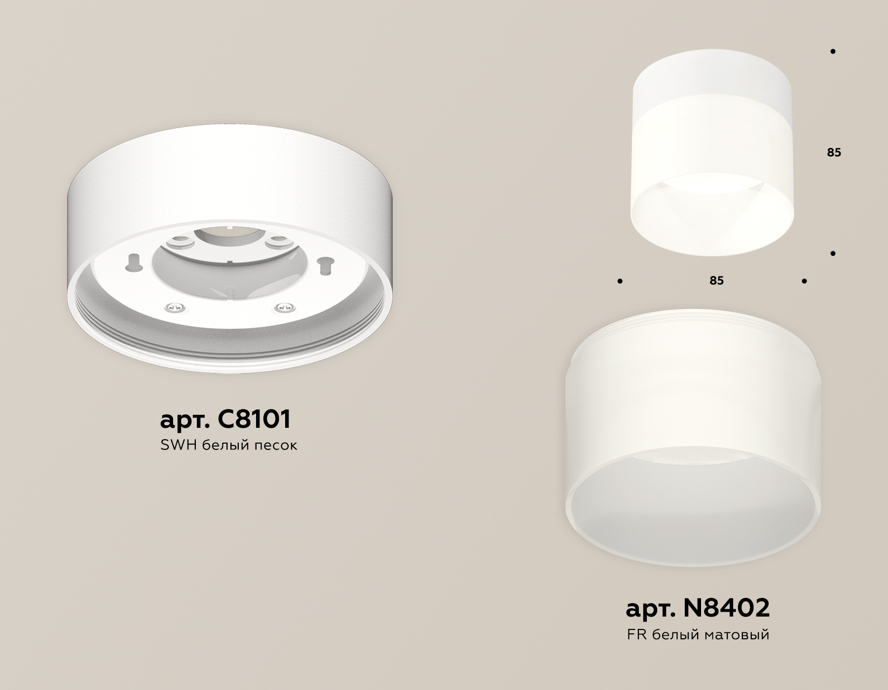 Комплект накладного светильника с акрилом XS8101016 SWH/FR белый песок/белый матовый GX53 (C8101, N8402)