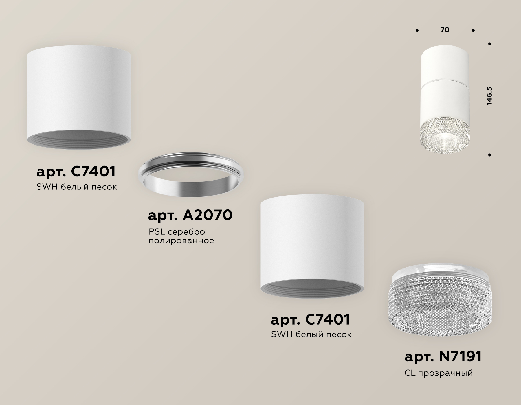 корпус накладной D70*2шт (цоколь GU5.3 в комплекте), коннектор D70, насадка передняя D70