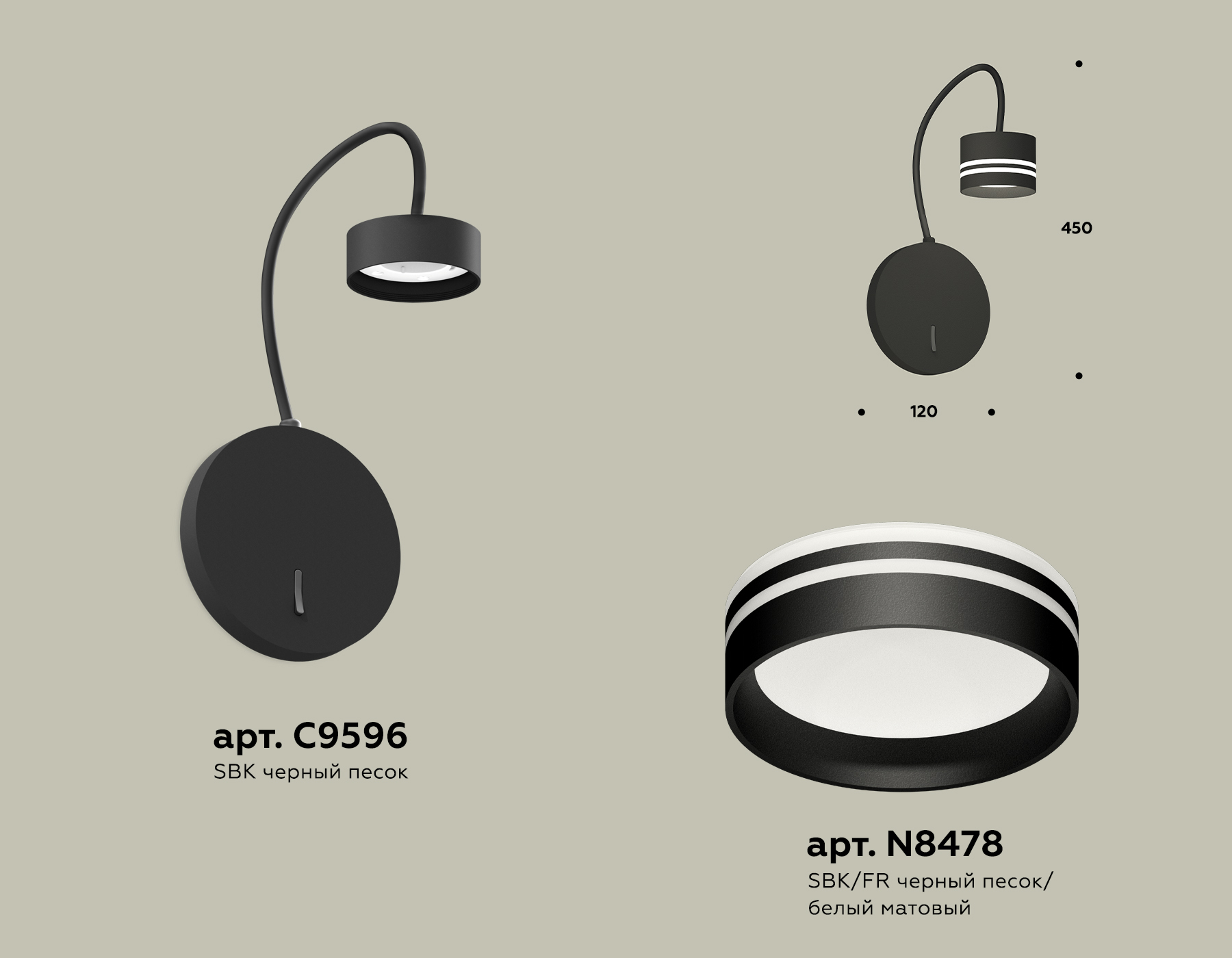Комплект настенного светильника с выключателем и акрилом XB9596203 SBK/FR черный песок/белый матовый GX53 (C9596, N8478)