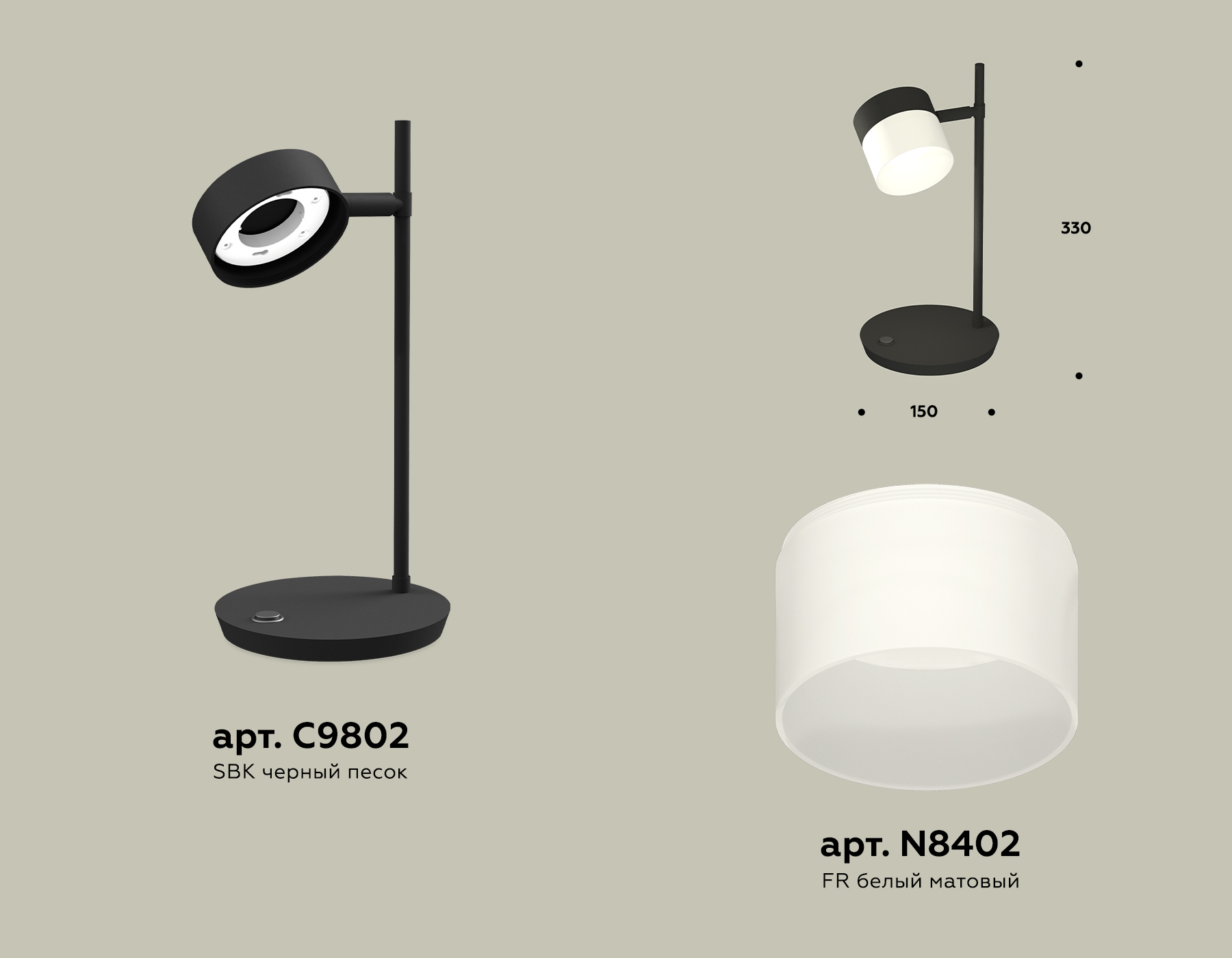 Комплект настольного поворотного светильника с акрилом XB9802204 SBK/FR черный песок/белый матовый GX53 (C9802, N8402)