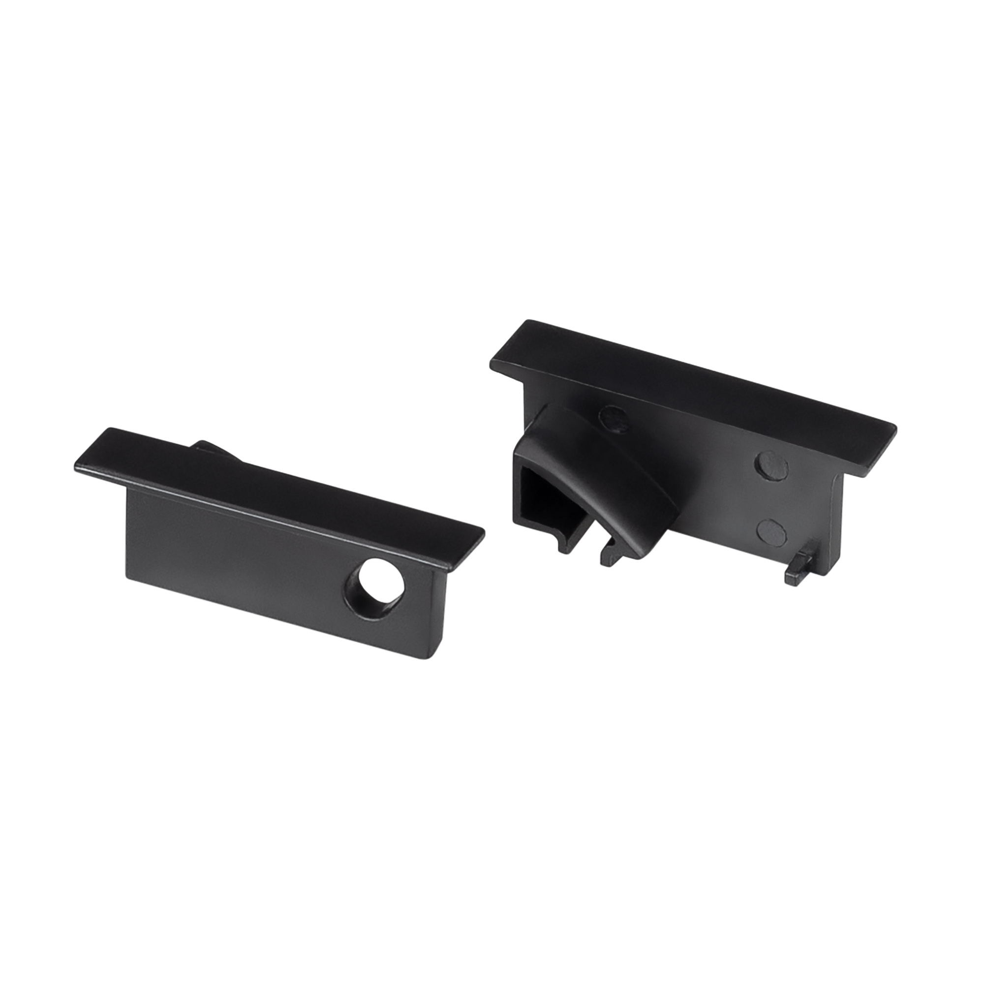 Пара заглушек (правая - с отверстием, левая - без отверстия) для профиля SL-BEVEL-W21-F. В комплекте 2 заглушки. Цвет - черный. Цена за комплект.