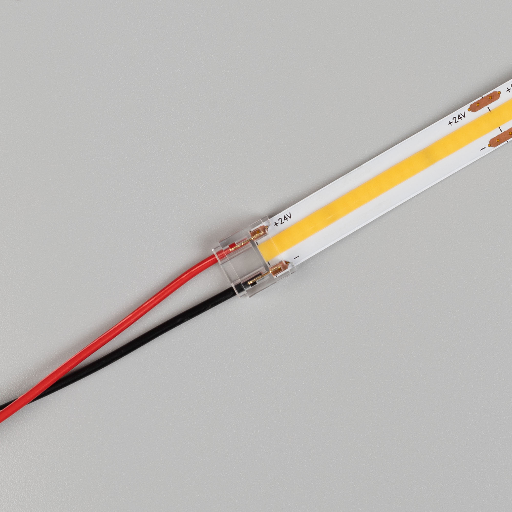 Коннектор STW для подключения питания одноцветных лент COB шириной 10 мм. Материал - прозрачный пластик. Максимальный допустимый ток 3 А, максимальное напряжение 24 В. Цена за 1 шт. Пакет 10 шт.