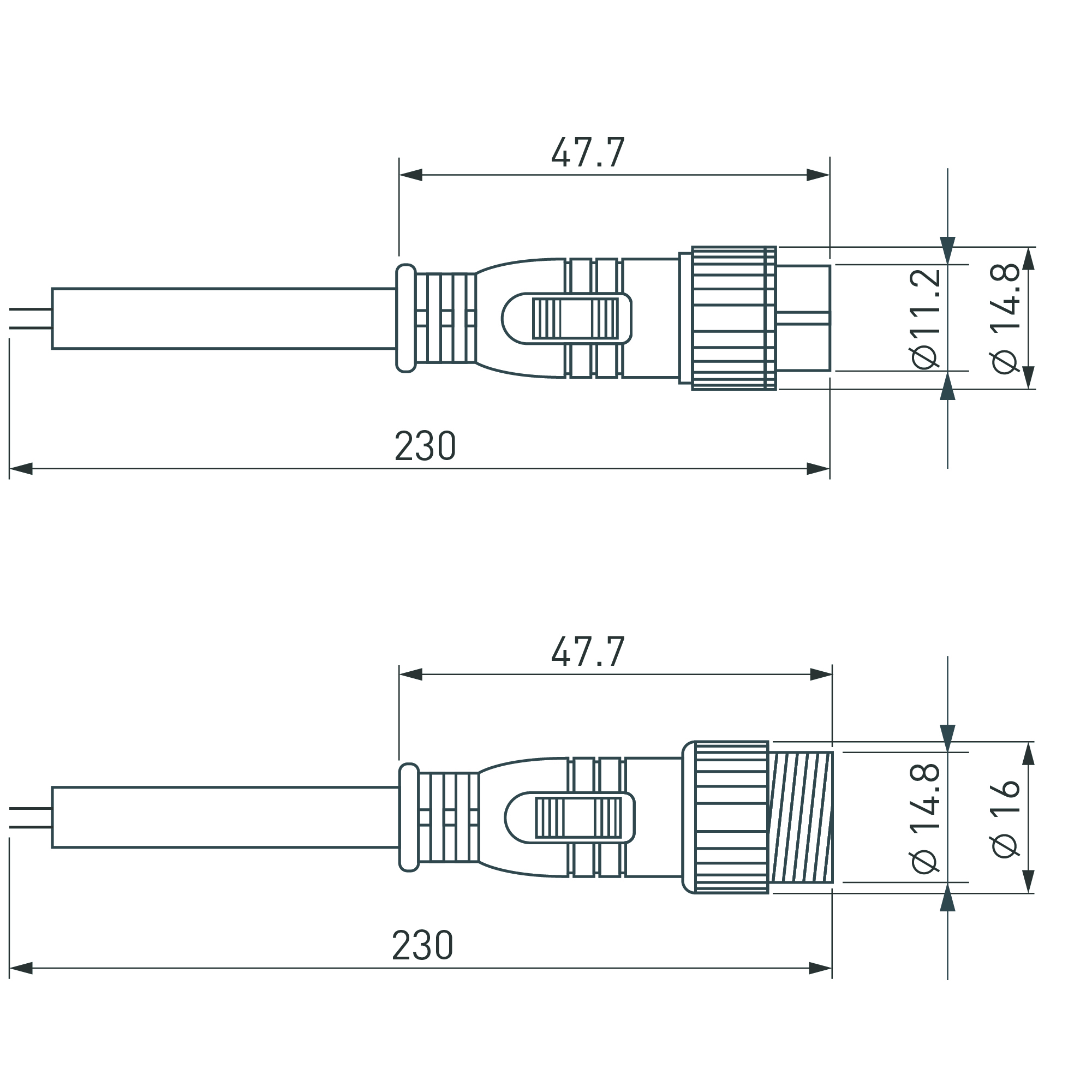 Коннектор для управления светодиодными прожекторами серии LINE с помощью протокола DMX512. Габариты разъёма DxH - Ø18х48мм, длина разъёма с проводом L=230мм.