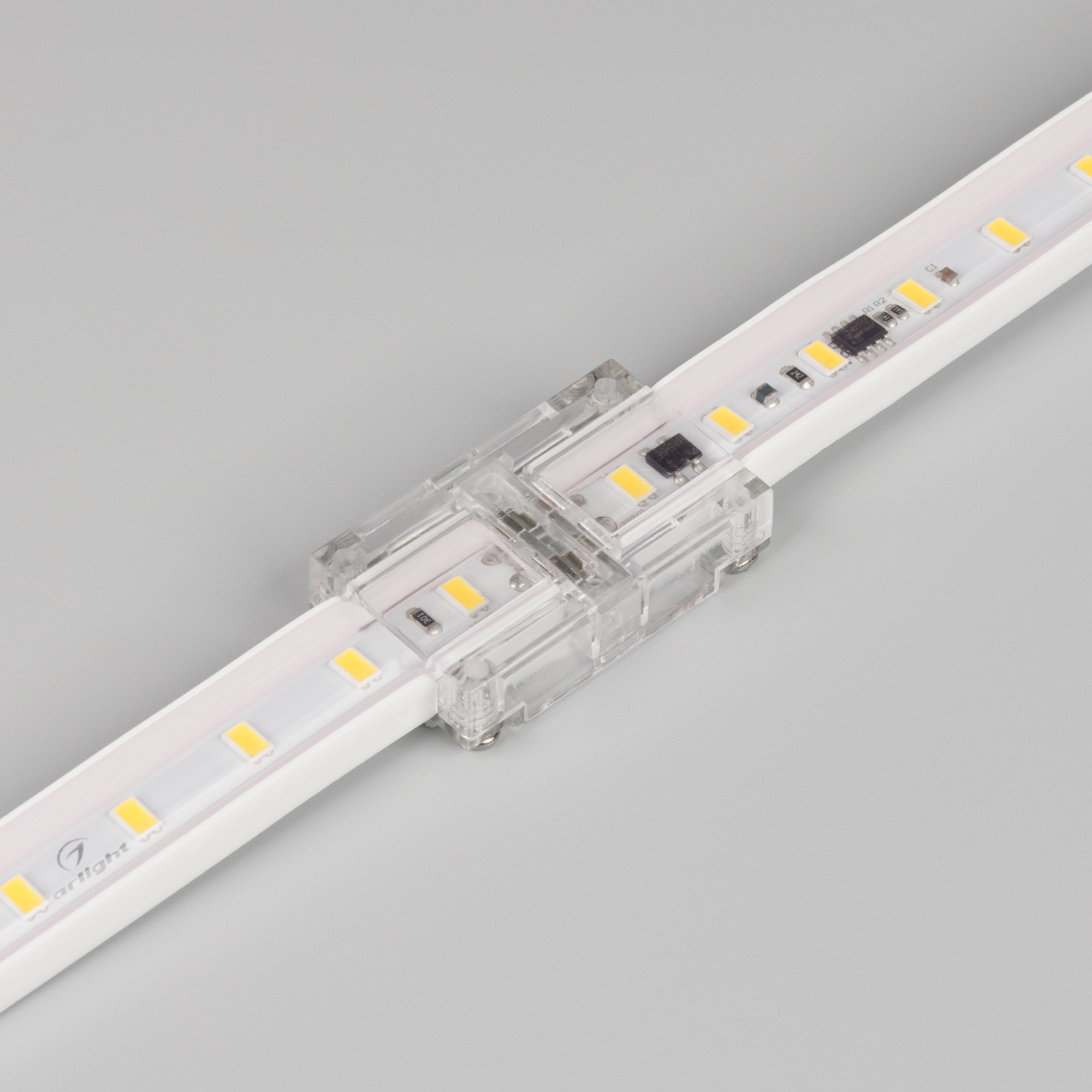 Коннектор прямой для соединения 2-х отрезков ленты ARL-50000PV (15.5x6mm, тип WP2). Питание 230V. Материал - прозрачный пластик PC.