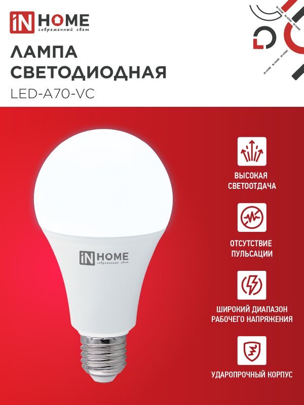 Лампа светодиодная LED-A70-VC 30Вт грушевидная 6500К холод. бел. E27 2850лм 230В IN HOME 4690612024165