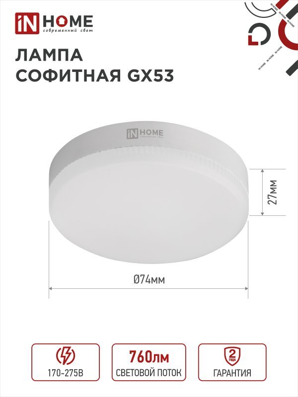 Лампа светодиодная LED-GX53-VC 8Вт таблетка 4000К нейтр. бел. GX53 760лм 230В IN HOME 4690612020730