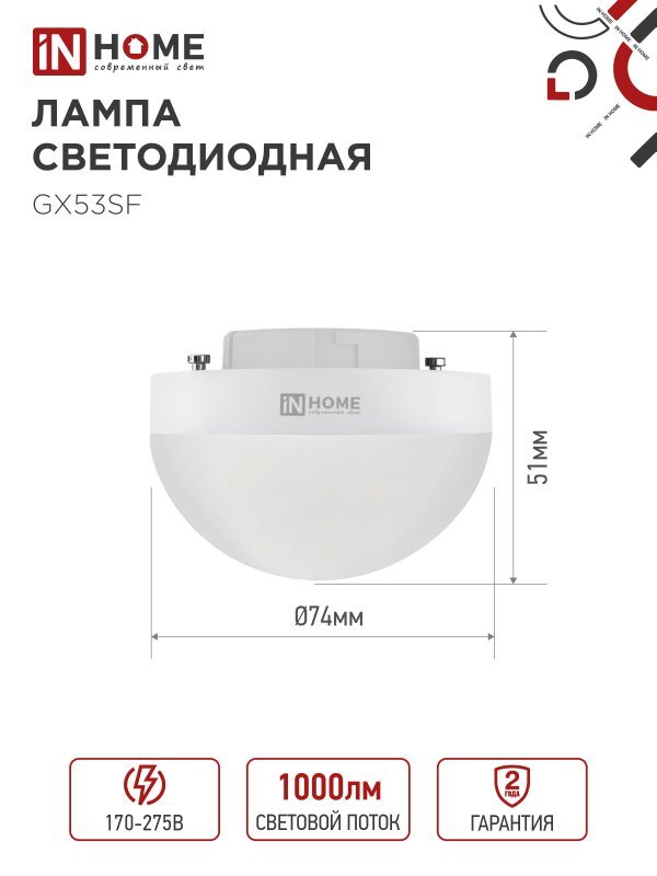 Лампа светодиодная LED-GX53SF-VC 10Вт 230В 6500К 1000лм IN HOME 4690612054568