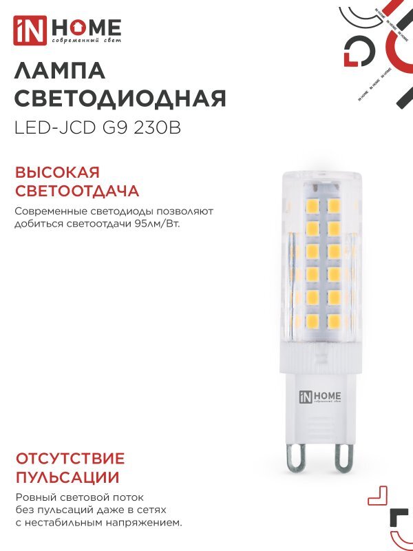 Лампа светодиодная LED-JCD 9Вт капсульная прозрачная 6500К холод. бел. G9 860лм 230В IN HOME 4690612036403