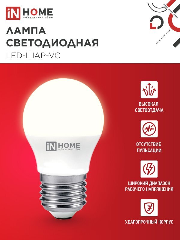 Лампа светодиодная LED-ШАР-VC 8Вт шар 3000К тепл. бел. E27 760лм 230В IN HOME 4690612020563