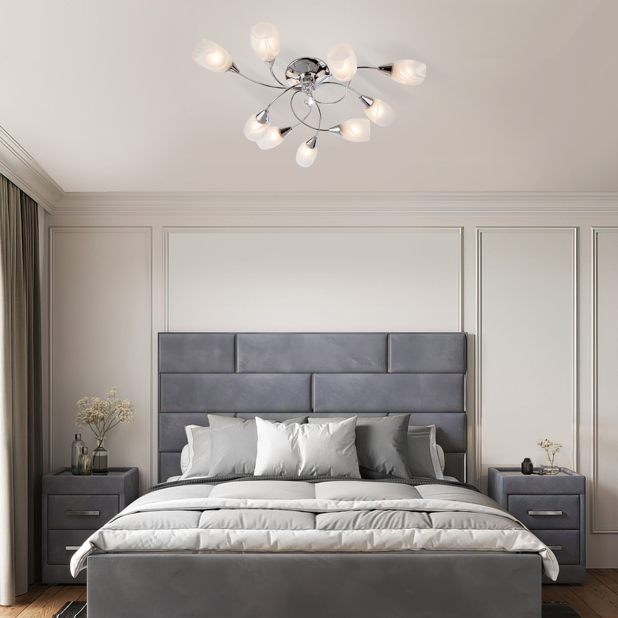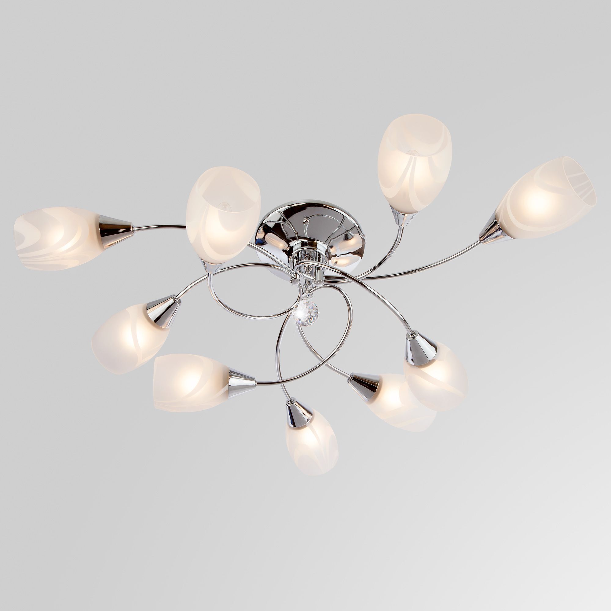 Организовать качественное освещение вам поможет современный потолочный светильник из коллекции Virginia. Его элегантный дизайн, сочетающий в себе плавные линии и сияющий хром, добавит нотку изысканности в вашу гостиную, спальню или прихожую.