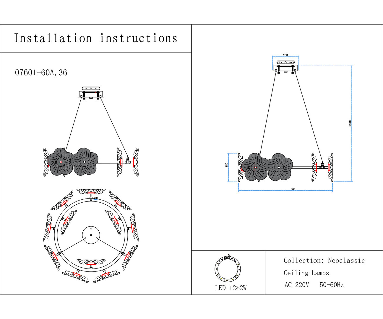 Люстра Грея латунь d60 h120 Led 12*2W (3000K)