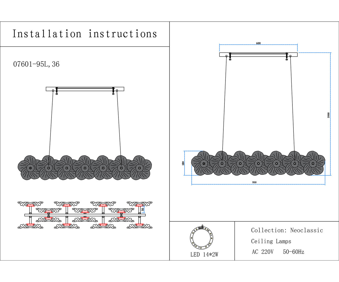 Люстра Грея латунь L95 h200 Led 14*2W (3000K)