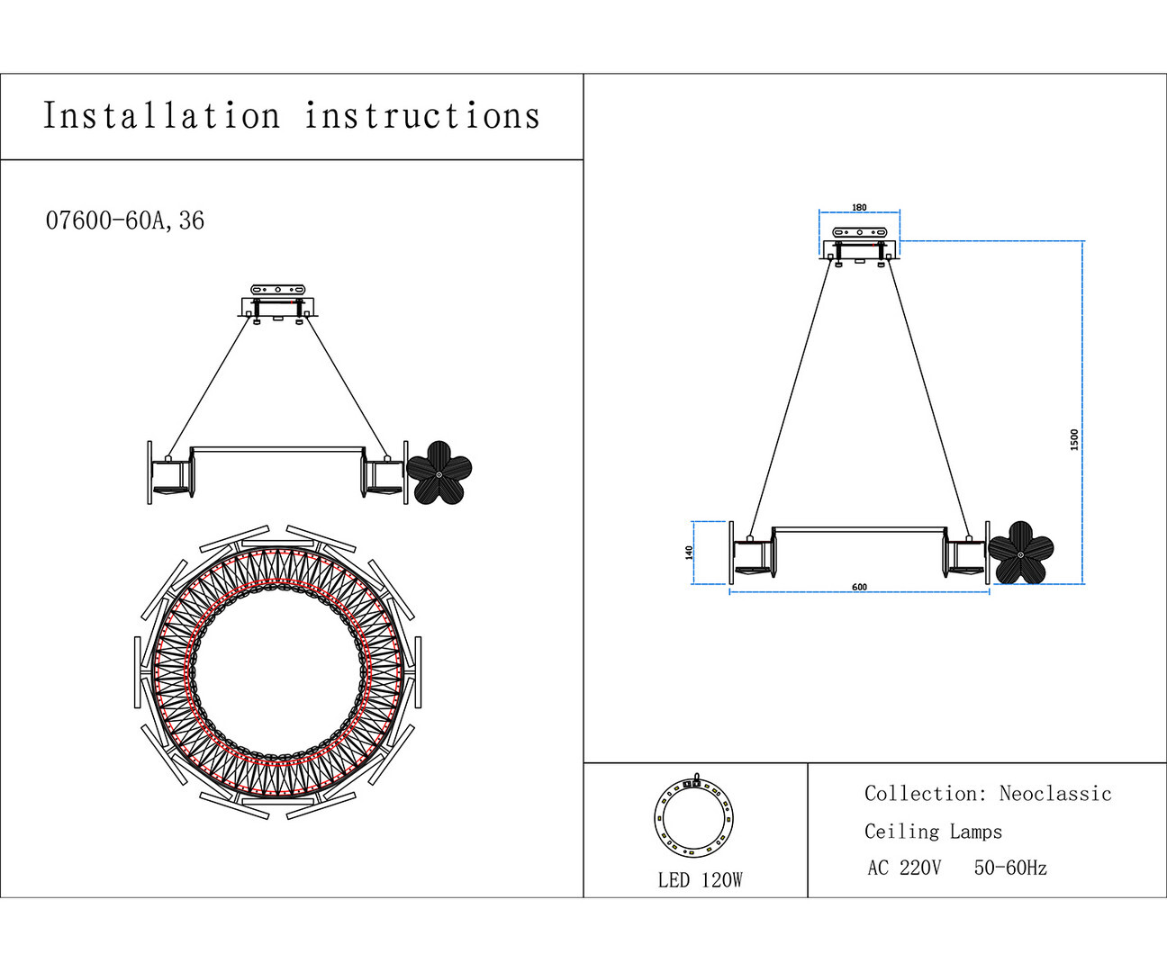 Люстра Лиона латунь d60 h150 Led 120W (3000K)
