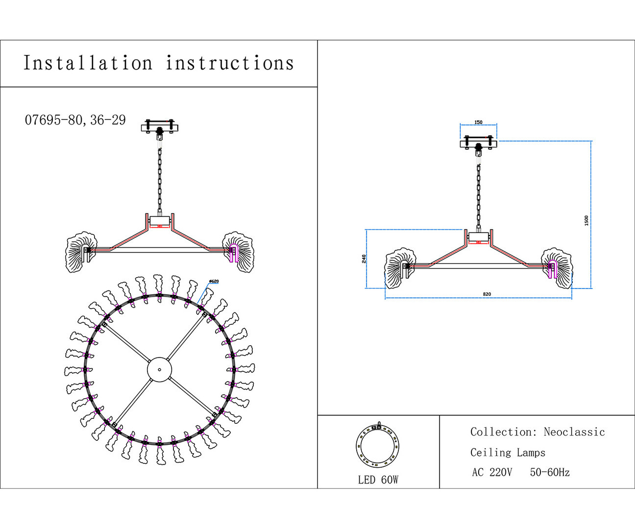 Люстра Мару латунь/черный жемчуг d82 h150 Led 60W (3000K)
