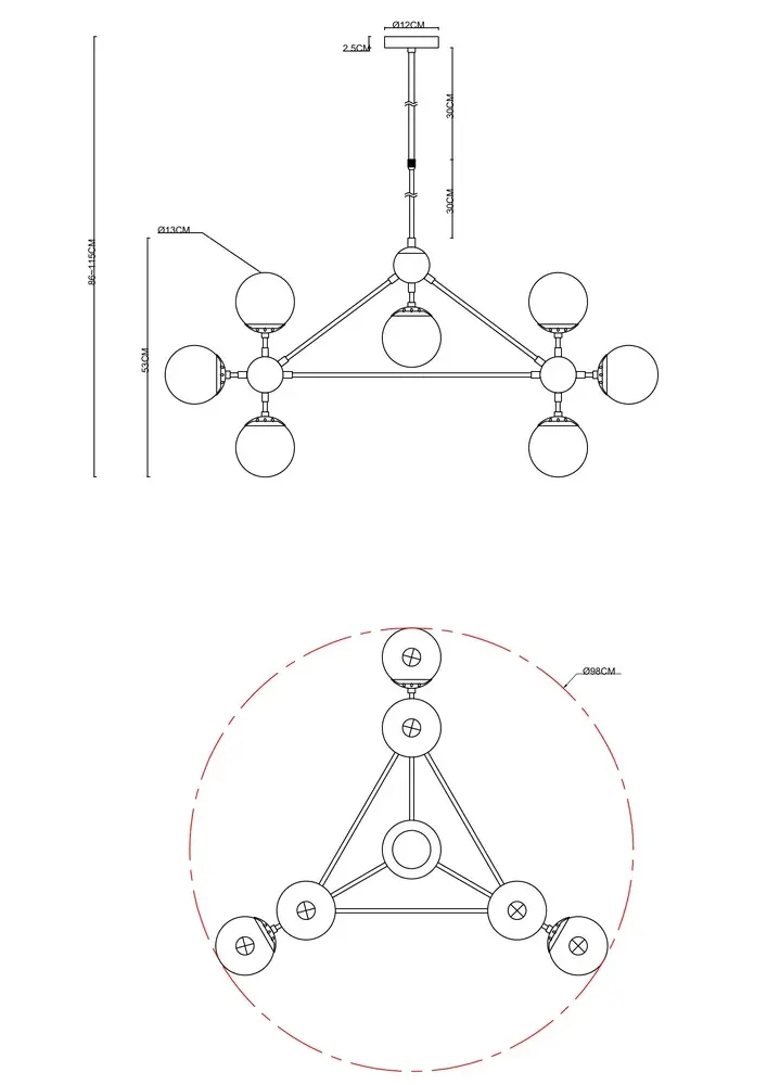 Люстра на штанге Arte Lamp BOLLA A1664SP-10BK, 10хE14