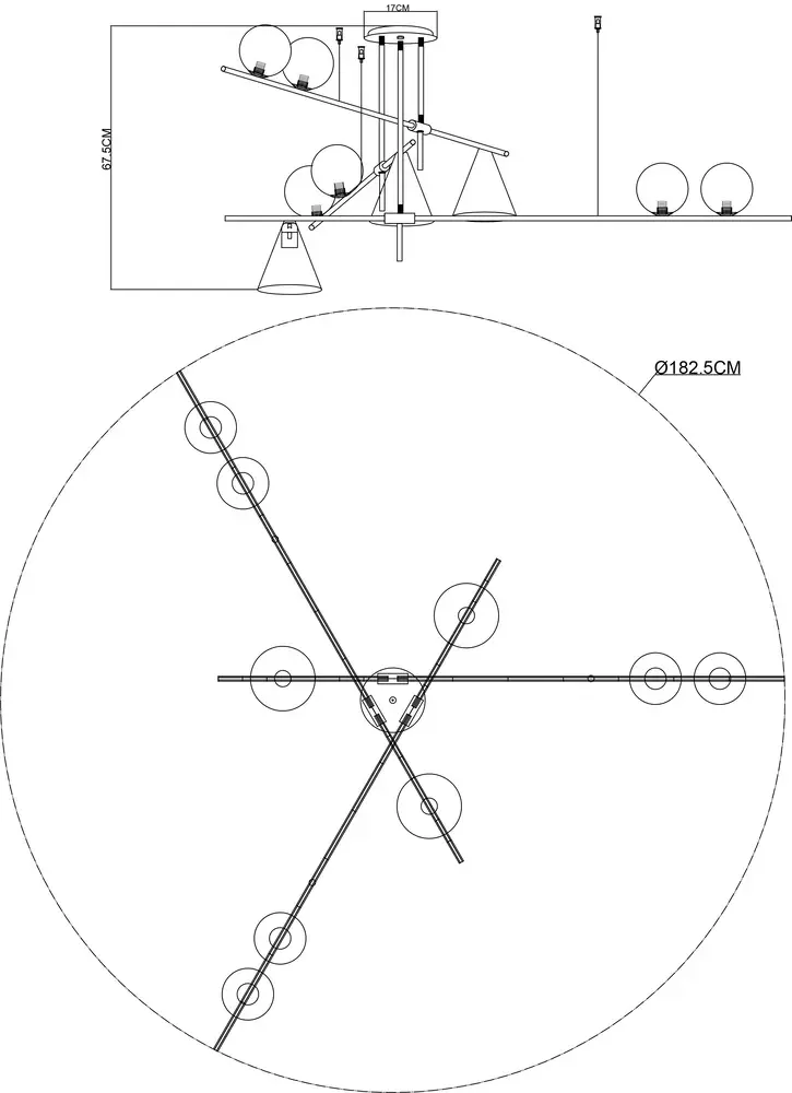 Люстра на штанге Arte Lamp JACOB A7029PL-9BK, 3хE27