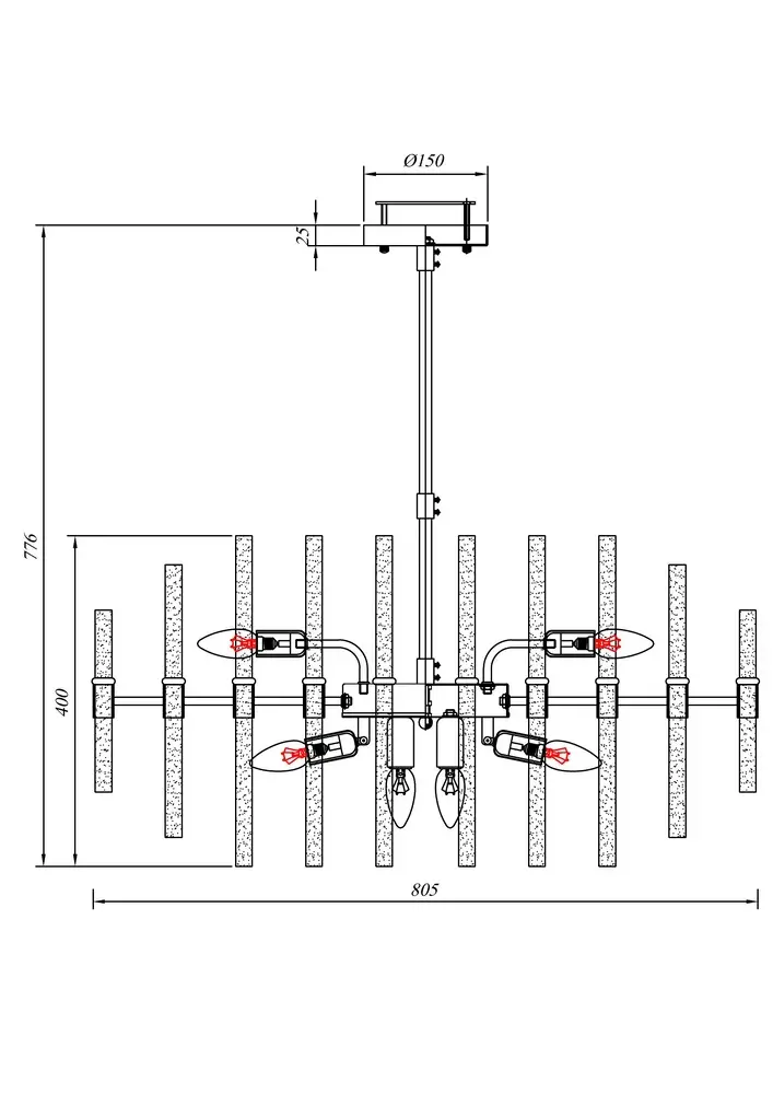 Люстра на штанге ARTE LAMP MATILDA A1064PL-12CC, 12хE14