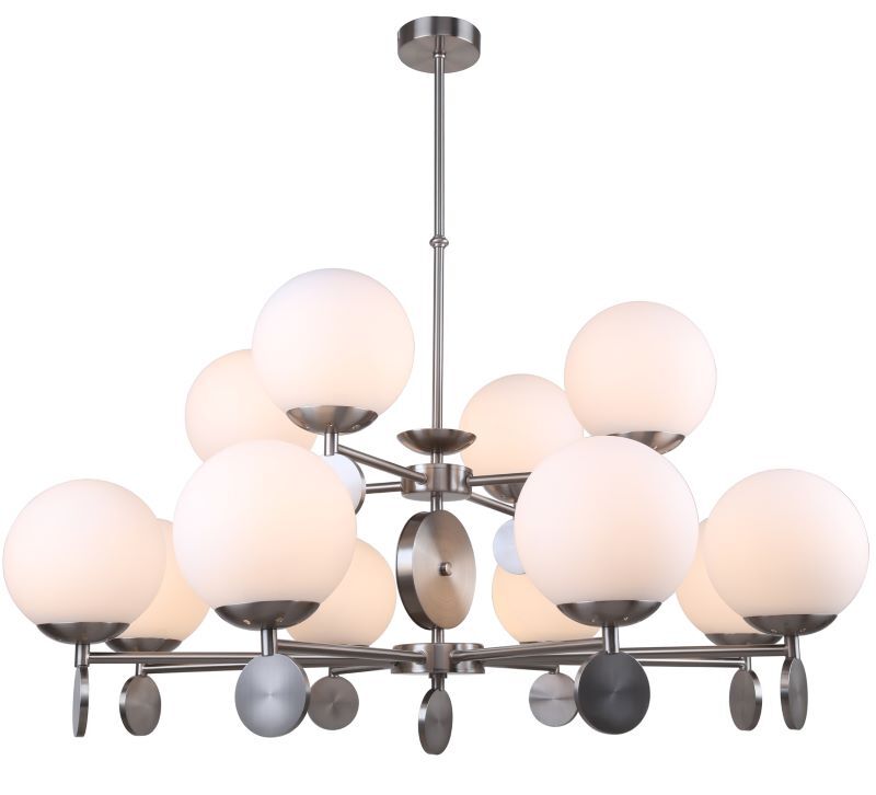 Люстра на штанге из коллекции Marsela выполнена из металла, гальванизированного в цвет никеля, и декорирована белыми стеклянными матовыми плафонами, а также металлическими медальонами, гальванизированными в цвет арматуры. Премиальное качество и неповторимыи? дизаи?н светильников идеально подои?дут как в классические, так и современные интерьеры.