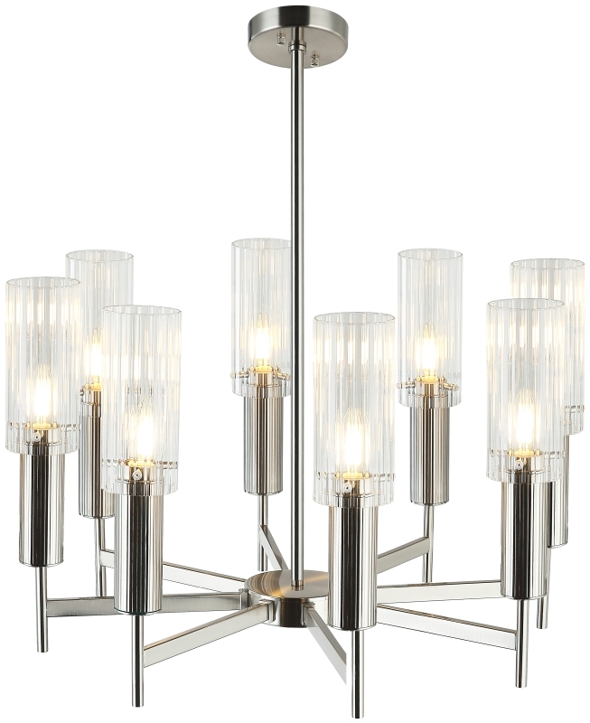 Люстра на штанге из коллекции Wunder выполнена из металла, гальванизированного в цвет никеля, и декорирована вытянутыми плафонами из стекла с линейным декором. Люстра функциональна и практична благодаря возможности менять направление плафонов в зависимости от предпочтений. Данная серия идеально сочетается с сериеи? SATORI.