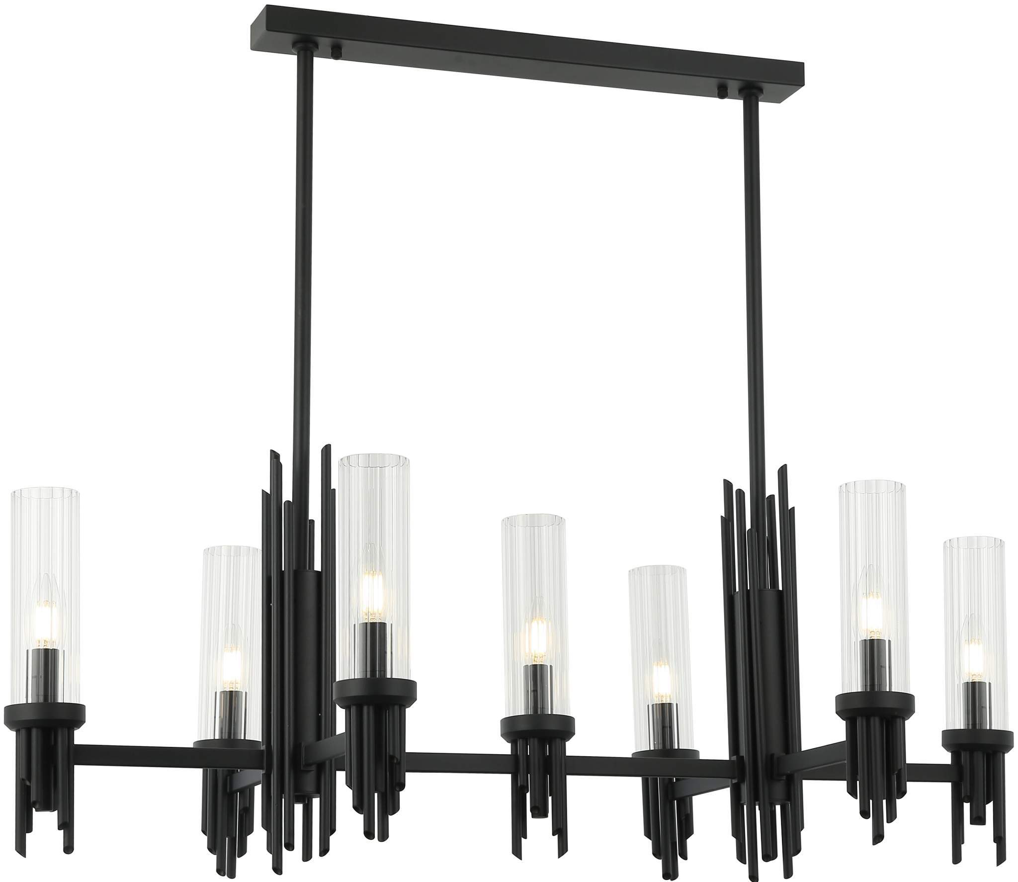 Люстра на штанге вытянутой формы из коллекции Graff выполнена из металла, окрашенного в черный цвет, и декорирована плафонами из прозрачного стекла с линейным рисунком и железными стержнями, окрашенными в цвет арматуры. Благодаря широкой арматуре люстра выглядит стильно и респектабельно. Премиальное качество и неповторимыи? дизаи?н светильников идеально подои?дут как в классические, так и современные дизайнерские интерьеры.