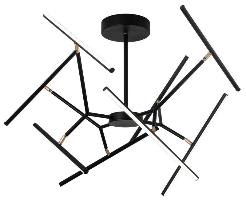 Люстра на штанге из коллекции Galactica имеет арматуру из сплава алюминия, окрашенную в черный цвет. Отдельные элементы арматуры гальванизированы в цвет бронзы. Плафоны выполнены из сплава алюминия, окрашенного в цвет арматуры. Светодиодные источники света закрыты белым матовыми акрилом. Плафоны снабжены поворотными механизмами. Все модели из коллекции Galactica оснащены пультом дистанционного управления 2.4 G.