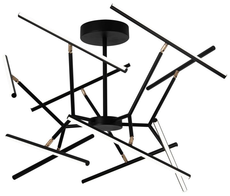 Люстра на штанге из коллекции Galactica имеет арматуру из сплава алюминия, окрашенную в черный цвет. Отдельные элементы арматуры гальванизированы в цвет бронзы. Плафоны выполнены из сплава алюминия, окрашенного в цвет арматуры. Светодиодные источники света закрыты белым матовыми акрилом. Плафоны снабжены поворотными механизмами. Все модели из коллекции Galactica оснащены пультом дистанционного управления 2.4 G.