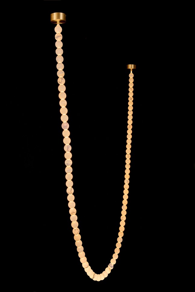 Окунитесь в мир изысканности вместе с уникальной коллекцией Adorno. Эти светильники — словно драгоценные ожерелья, сотканные из натурального испанского алебастра. Каждый элемент обладает неповторимым природным орнаментом, делая светильник поистине уникальным.