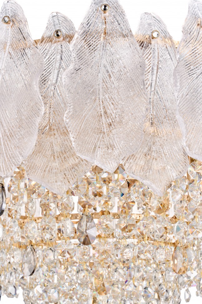 Симфония хрустальной красоты. Alloro – воплощение безупречности неоклассического стиля. Название коллекции в переводе обозначает «лавр». Декоративные элементы плафонов выполнены в виде лавровых листьев. В античности венок из них символизировал победу и триумф. Эта символика в современном прочтении демонстрирует утонченный стиль и триумф красоты. Подвесы люстр изготовлены из стекла самого высокого качества и прозрачного хрусталя. Вкрапления из тонированного хрусталя янтарного цвета создают эффект теплых, медовых бликов. Корпус светильников - из металла с гальваническим покрытием цвета золота. Источники света: сменяемые лампы с цоколем типа "миньон". В коллекции круглые люстры диаметром 50 см. на 6 ламп, 60 см. на 15 ламп, 80 см. на 21 лампу, люстра вытянутой волнистой формы длиной 120 см. на 9 ламп, настенный светильник высотой 30 см. на 2 лампы.