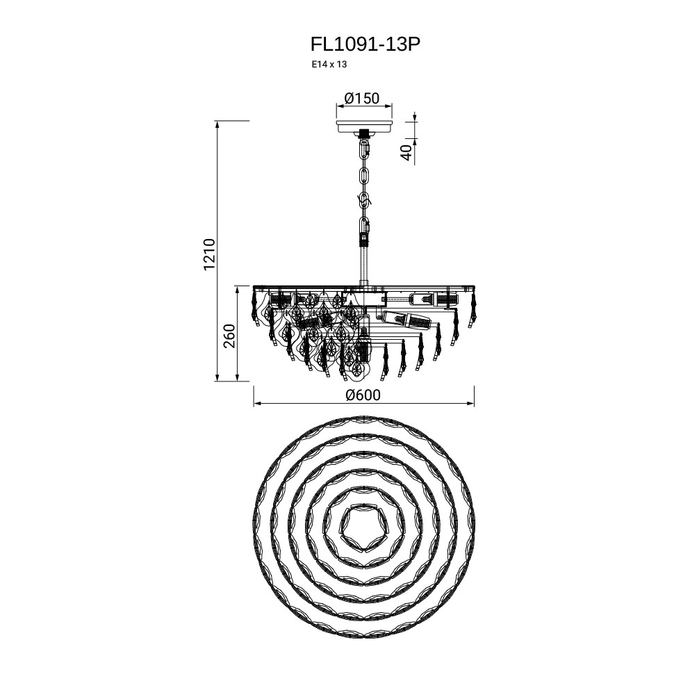 Люстра подвесная Dignita FL1091-13P, E14х13