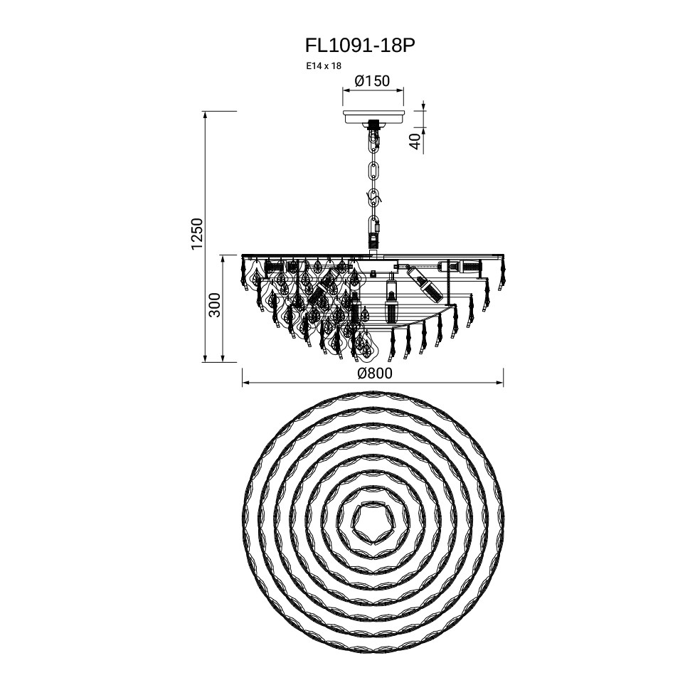 Люстра подвесная Dignita FL1091-18P, E14х18