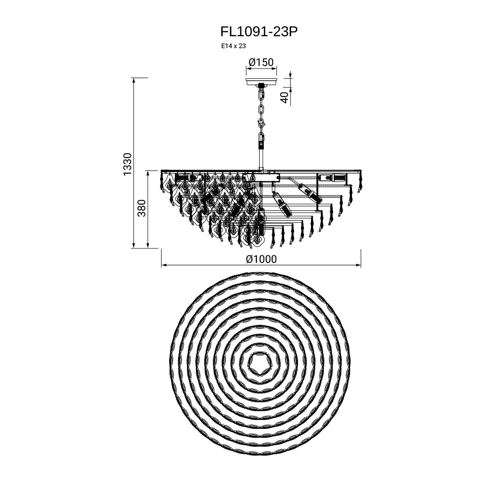 Люстра подвесная Dignita FL1091-23P, E14х23