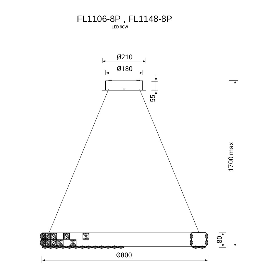 Люстра подвесная Elegance Chrome FL1148-8P, LED