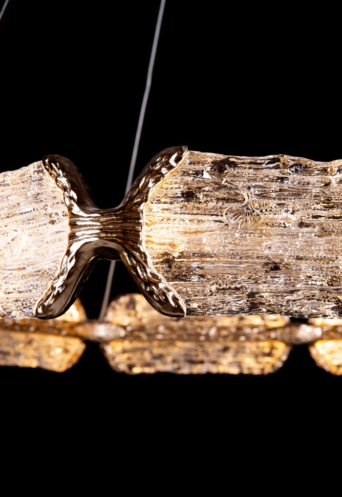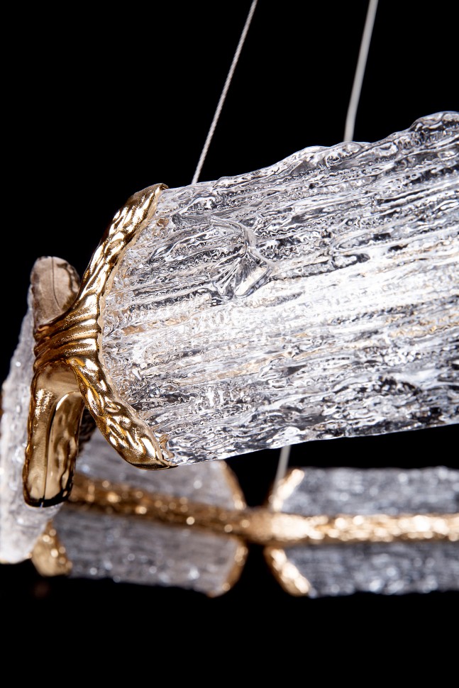 Светильники Epico достойны украшать самые изысканные интерьеры. Они будто сошли со страниц истории с описанием замков, роскошных пиров, королевских покоев. Плафоны выполнены из инновационного материала, — прозрачной полимерной смолы, которая намного прочнее и долговечнее стекла. Текстура поверхности плафонов точно повторяет природный рисунок льда. «Льдины» заключены в роскошную оправу из металла с глянцевым гальваническим покрытием. Корпус светильников — металл с гальваническим покрытием. Источники света — встроенные светодиоды. Коллекция представлена люстрами различных форм и размеров и двух размеров бра. Два варианта цвета гальванического покрытия, — золото и хром