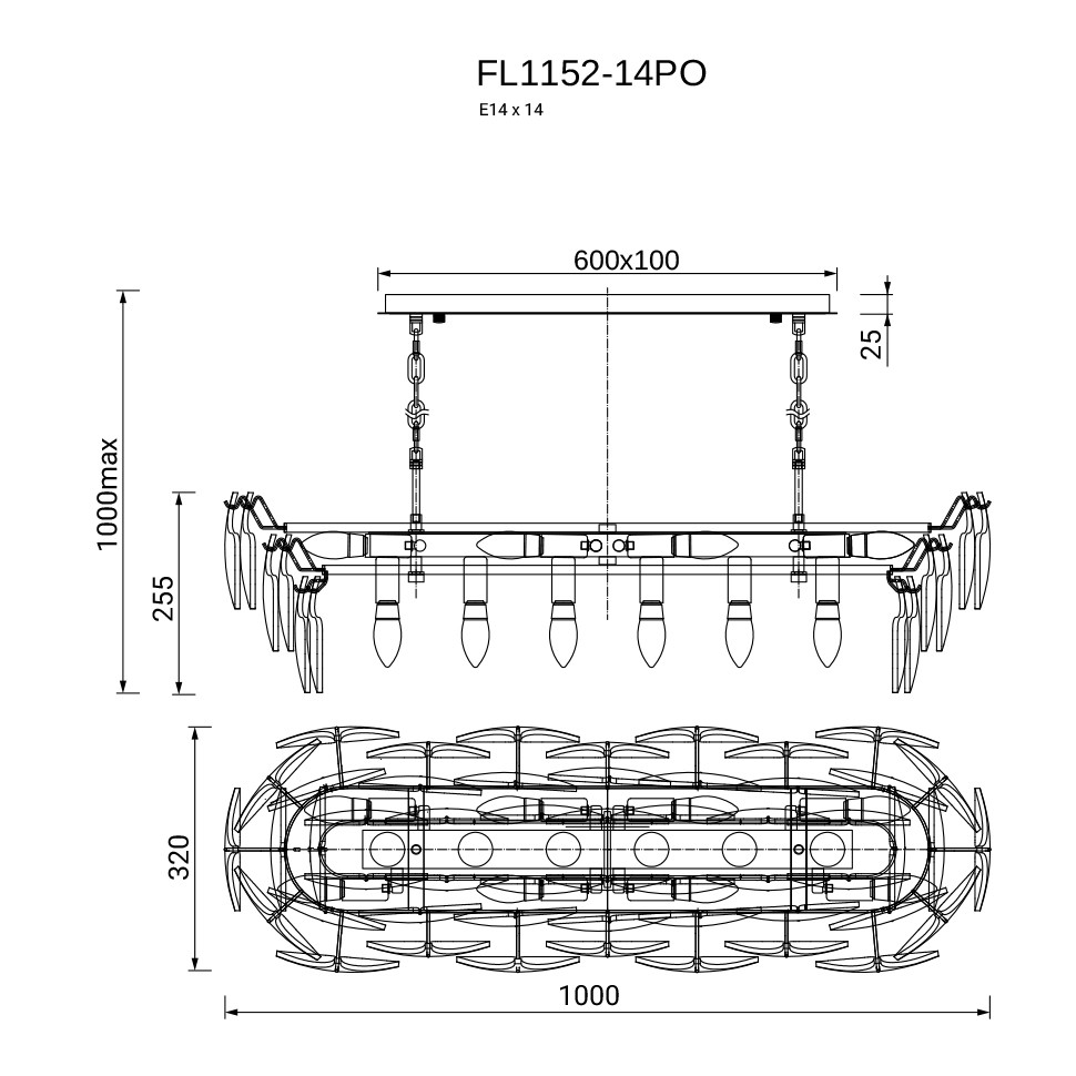 Люстра подвесная Infinita FL1152-14PO, E14х14