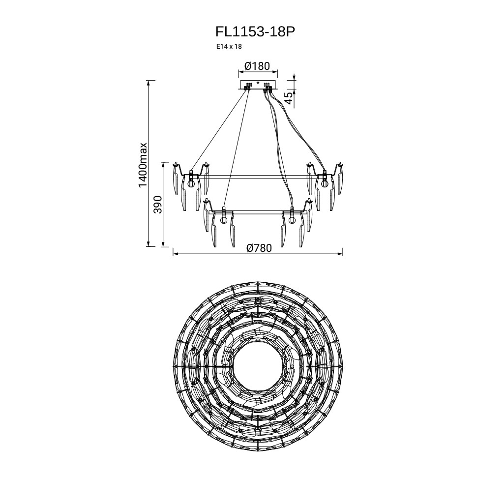Люстра подвесная Infinita FL1153-18P, E14х18